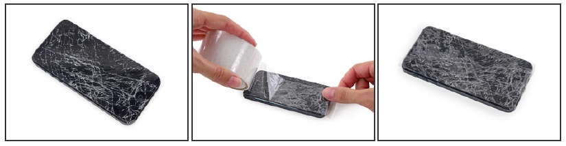 - Наклейте на поврежденный экран iPhone несколько полос скотча, таким образом, чтобы вся поверхность стекла дисплея была закрыта.