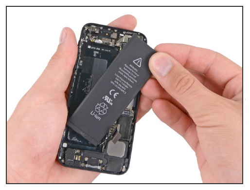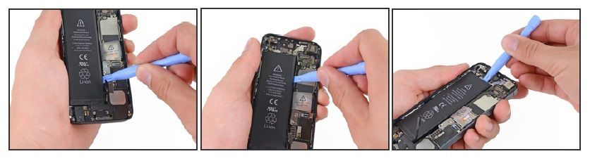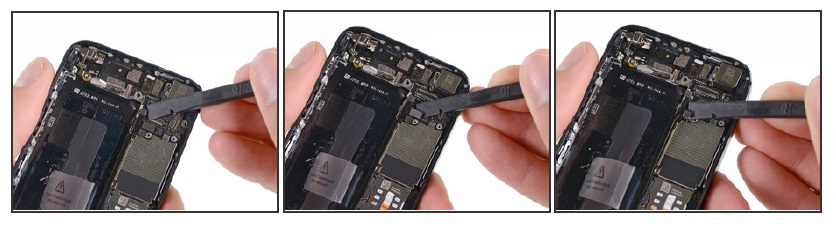 - Используя пластиковый инструмент, аккуратно приподнимите разъем шлейфа аккумулятора вверх от гнезда на плате.