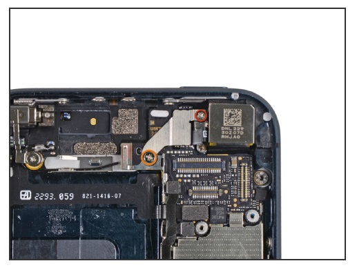- Удалите следующие 2 винта, крепящие плату к корпусу телефона: