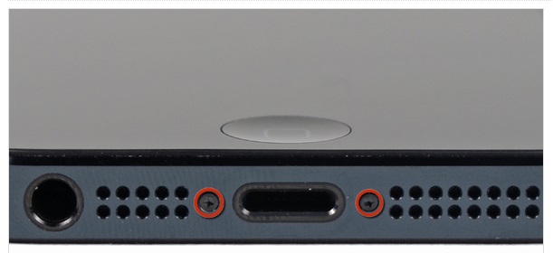 - Открутите 2 винта с пятиконечной звездой 3.6 мм рядом с разъемом Lightning.