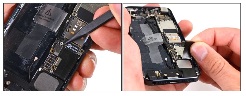 - Используя тонкий конец инструмента, отсоедините кабеля антенны Wi-Fi от корпуса телефона.