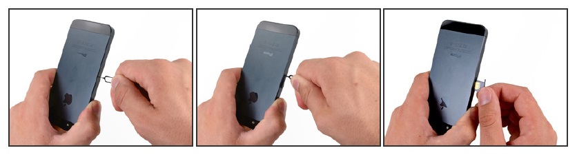 - Чтобы извлечь лоток с СИМ-картой, вставьте в отверстие в отделении СИМ-карты штатный инструмент для извлечения или обычную скрепку и нажмите.