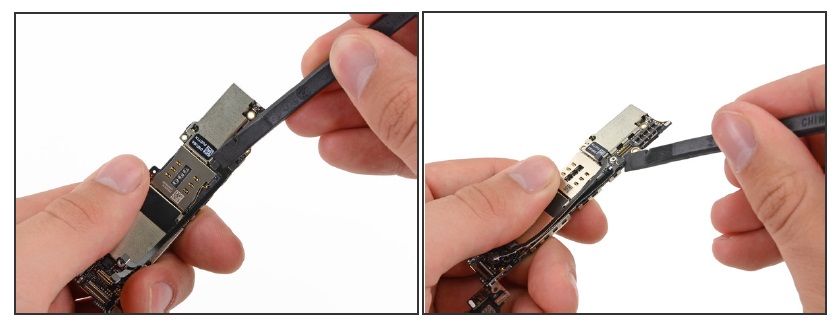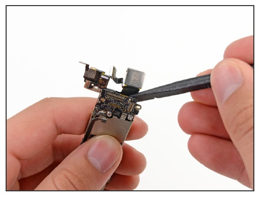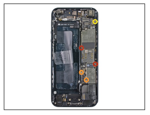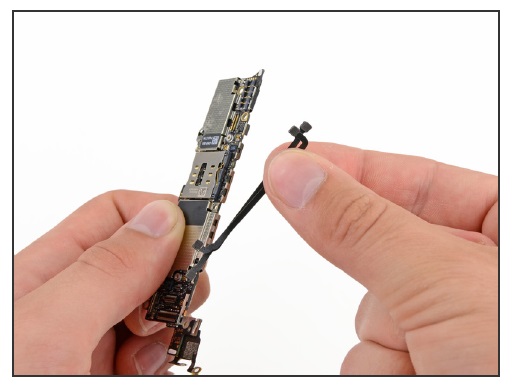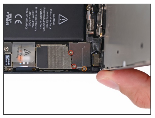 - Удалите отдельный крестовой винт 1,2 мм Philips с металлической пластины в средней части платы телефона.