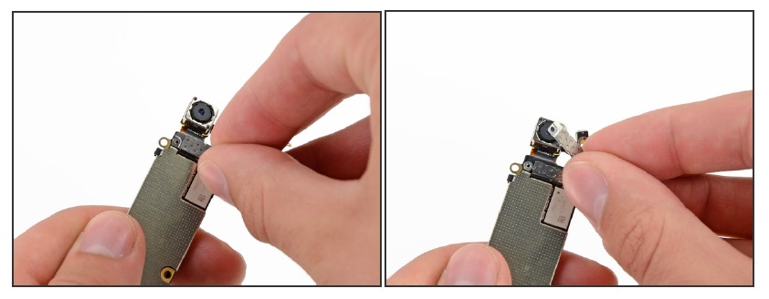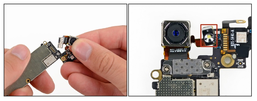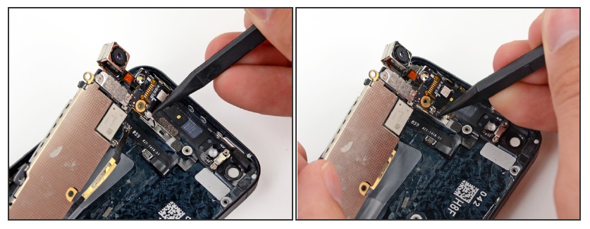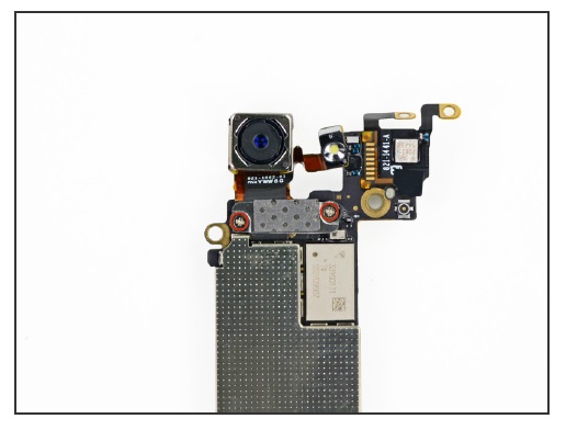- Удалите два 1,1 мм Phillips (Крестовой) винта, крепящие пластину задней камеры к материнской плате.