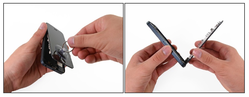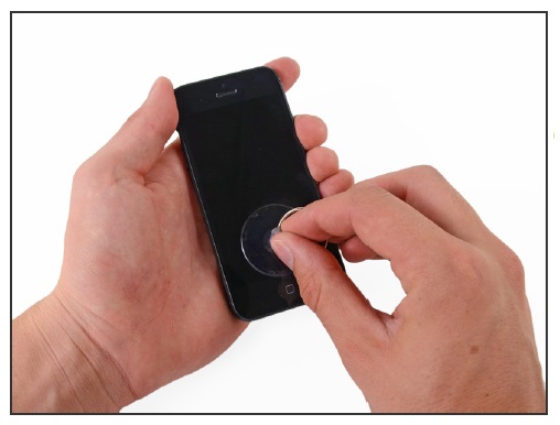 - Удерживая iPhone одной рукой, потяните присоску вверх, чтобы слегка отделить дисплейный модуль от корпуса.