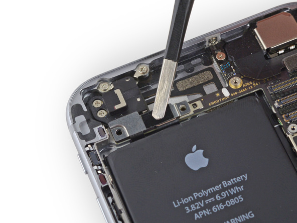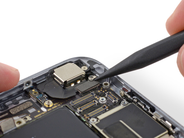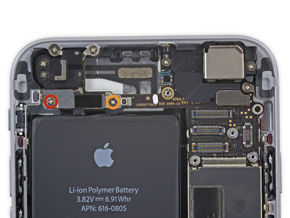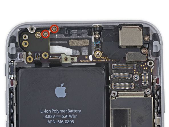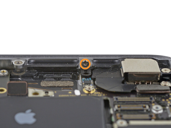 Удалите следующие два винта, крепящие угловую пластину к корпусу телефона: