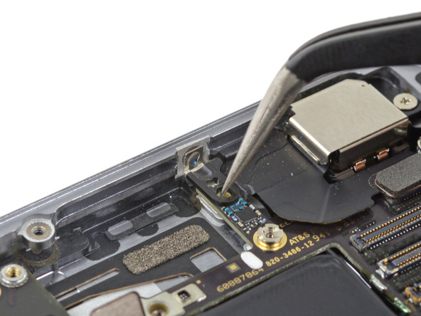 - Удалите винт 1,2 мм Phillips(Крестовой), крепящий соединительный кабель антенны к материнской плате.